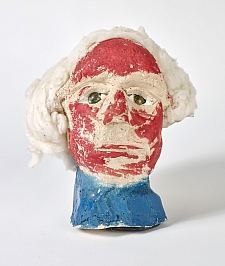 I make a face first, then make me a skull. First I shape it up like a regular man's head. Then I cut it down to a skeleton head. . . . Your eyes are on a level with your ears. They can't be a bit higher than your ears and they can't be no lower They got to be the same level your ears is and that's why you don't have no trouble making glasses. . . . So I go back to where I done mashed up there with the eyes, and that's automatic the nose.