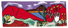 When the day ended there, Light would come home and watch documentaries, cartoons, and cowboy movies on television. Perhaps it was the Westerns, with their indelible panoramas of Monument Valley that instilled in Light the great American sense of landscape. And when the affective medium was not television, it was old postcards and souvenir photos and placemats. Light’s art was being born then. The array of landscapes, from the tiny to the huge, with their boldly colored skies, mountains, rivers, grass, trees, and flowers, were Light’s visual guides to pioneer survival.