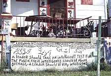 Joe Light needs to communicate. His God has defined the ideal world, and Light feels compelled to pass along the definition. For more than thirty years, Light has searched for ways to make God comprehensible. First, Light wrote biblical-sounding pronouncements on sidewalks, and on walls beneath expressway bridges. Then he began painting signs in his yard: signs instructing parents to nurture their children as flowers in a garden; signs that complain about sex education in the schools, which Light is convinced turns teenagers into pimps and prostitutes; signs complaining about the lack of support for blacks by other blacks; reprimands to the government for lying to its citizens and mistreating its minorities. The signs are always challenging and sometimes threatening, yet there is another side of Joe Light. His yard is completely enclosed by fences. “I don’t want nobody coming in,” Light explains, but he really doesn’t want anybody going out, either. It is a voluntary self-incarceration. He worries about his eight children when they leave the house for the outside world. He senses that they are safe inside the house and imperiled outside the gate. He knows what lurks out there, so he stays home as much as he can.