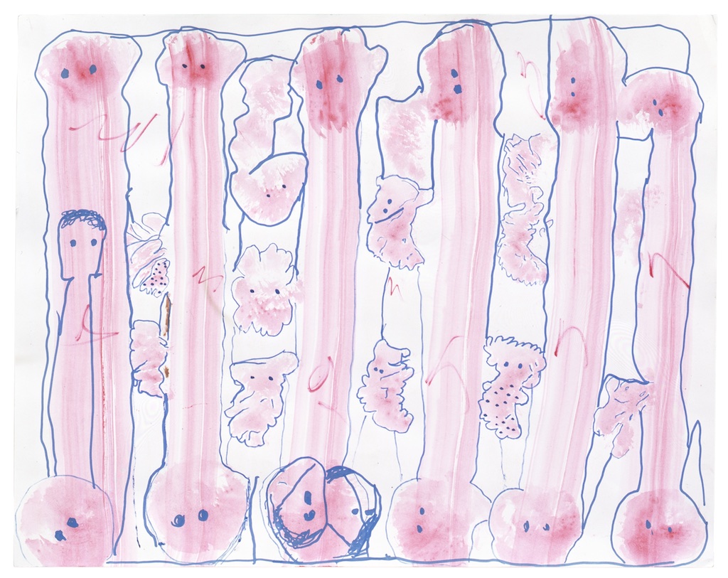 The third piece resulted from Murray’s being supplied with an expanded range of colors (including purple, orange, brown, and green). He produced a remarkable landscape with a variety of trees and flora, a Murray “Garden of Eden,” with good and bad, original sin and spirituality, the presence of God, man, and the Devil: the world as Murray experienced it.