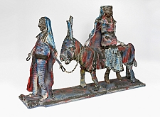 In Mary and Joseph Bringing a New Meaning to Life, Dial summons up the yard art/creche tradition that has been such an influence on his work. He creates a half-life-size tableau of the pregnant Mary astride the back of a donkey being led by Joseph on foot. The infrastructure of the sculpture is steel, a symbol of strength. Yet the figures are all carefully wrapped in rope, an unintentional resemblance to the Kongo tradition of concealing spiritual objects through wrapping or bundling. However, as a final touch, Dial brings his figures squarely into the present by spray-painting the entire piece in red, white, and blue.